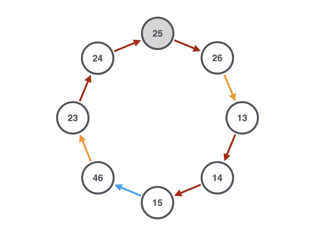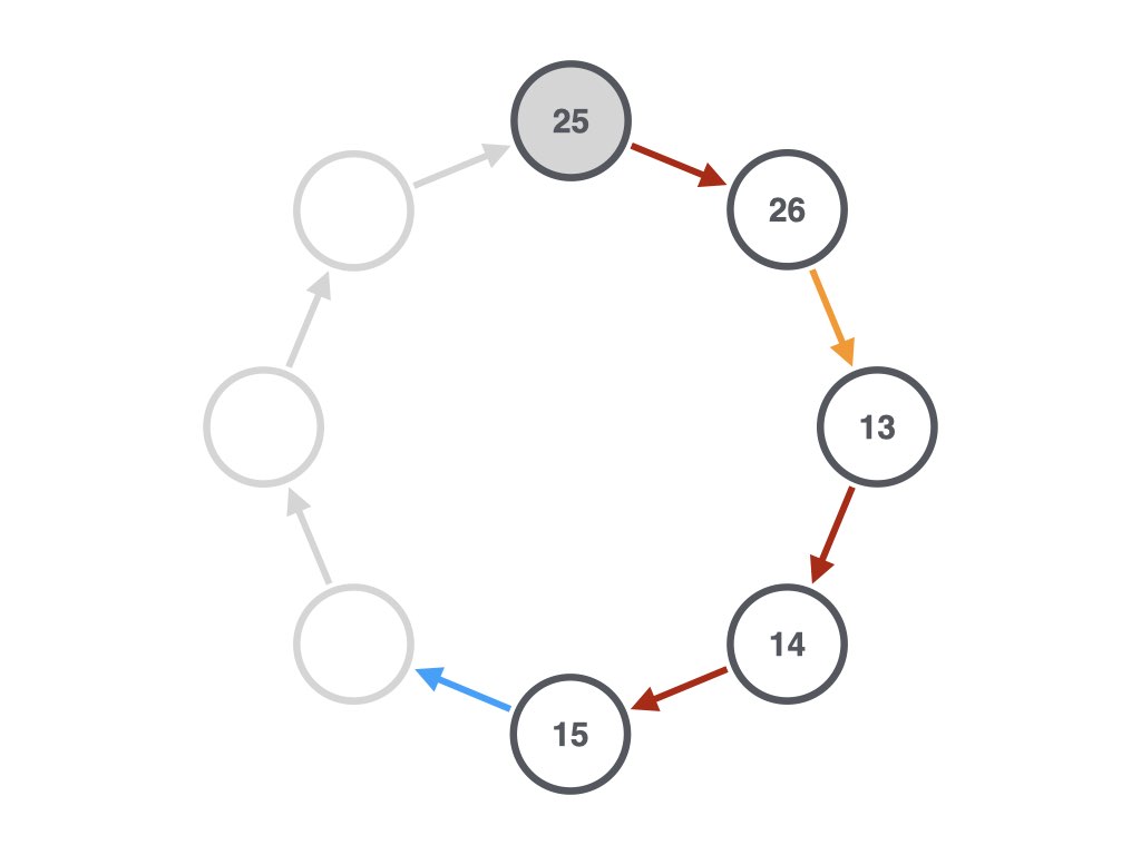 That’s true for both the wrong solution and the correct solution for 25. What additional thing was I trying to do? I failed with the first loop of size 9, because there was a smaller loop that worked for 25.